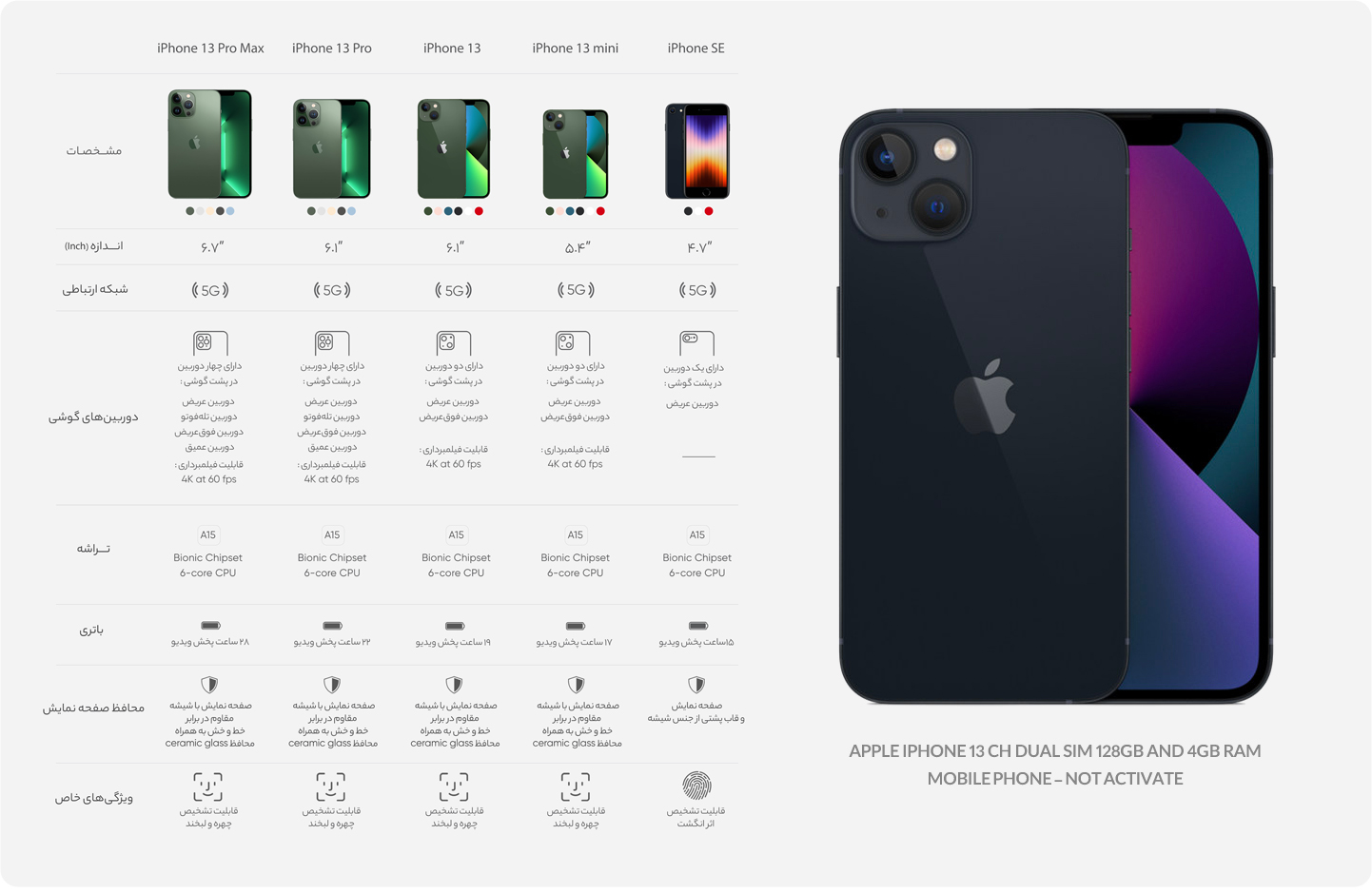 Xiaomi Poco X7 Pro Dual SIM Storage 512GB And RAM 12GB Mobile Phone - Globalگوشی موبایل iPhone 13 CH پرچمدار جدید شرکت اپل است که با چند ویژگی جدید و دوربین دوگانه روانه بازار شده است. نمایشگر آیفون 13 به پنل Super Retina مجهز شده است تا تصاویر بسیار مطلوبی را به کاربر عرضه کند. این نمایشگر رزولوشن بسیار بالایی دارد؛ بهطوریکه در اندازهی 6.1 اینچیاش، حدود 460 پیکسل را در هر اینچ جا داده است. امکان شارژ بیسیم باتری در این گوشی وجود دارد. تشخیص چهره با استفاده از دوربین جلو دیگر ویژگی است که در آیفون جدید اپل به کار گرفته شده است. از نظر سختافزاری این گوشی از تراشهی جدید A15 بهره میبرد که دارای 15 میلیارد ترانزیستور است که دارای کنترل گرمای مطلوبی بوده که تا بتواند علاوه بر کارهای معمول، از قابلیتهای جدید واقعیت مجازی که اپل این روزها روی آن تمرکز خاصی دارد، پشتیبانی کند. به گفته خود شرکت اپل این گوشی دارای سرعتی 50 برابر نسخه 12 خود است. پردازنده دارای ماژولار جدیدی است که مصرف باتری را بسیار پایینتر آورده است و شما دارای حفظ باتری بالاتری هستید. کیفیت نمایش شما در iPhone 13 دارای 120 هرتز است و کیفیت بالایی را شاهد خواهید بود. اپل در این سری از گوشیهای iPhone خود پردازنده گرافیکیای را قرار داده که از سری 12 گوشیهای خود 30 درصد سریعتر است و این نویدبخش آن است که شما میتوانید بازیهایی را با گرافیک و MAP سنگین تر و بزرگتر اجرا کنید. یکی از ویژگیهایی که در iPhone 13 شاهد هستیم سیستم فیلمبرداری ProRes سینمایی آن است که می تواند انقلابی در فیلمبرداری گوشیهای موبایل بهراه انداخته باشد. گوشیهای نات اکتیو با قرار گرفتن سیمکارتهای داخلی اکتیو میشوند و برخلاف مدل اکتیو پلمپ کالا باز نشده است. گوشیهای اکتیو برند اپل هم به این شکل هستند که به دلیل محدودیتهای برخی از محصولات اپل برای کشور ایران، در کشورهای همسایه بهصورت رسمی با یک بار قرار گرفتن سیمکارت، اکتیو شده و پلمپ میشوند و باید بدانید که این پروسه هیچ مشکلی در راستای گارانتی کالا بههمراه ندارد. پارتنامبرهای اروپا و ژاپن و امارات تک سیمکارت هستند و پارتنامبرهای مربوط به امارات هم از فیس تایم پشتیبانی نمیکنند. پارتنامبر JA (ژاپن) هم حتی در حالت سایلنت صدای شاتر عکس قطع نمیشود.